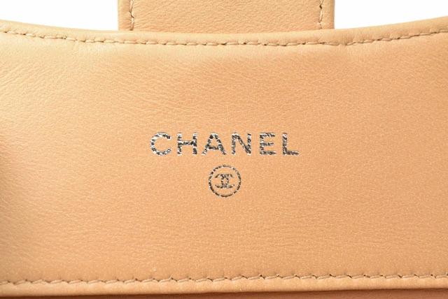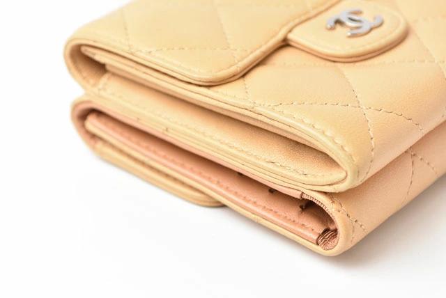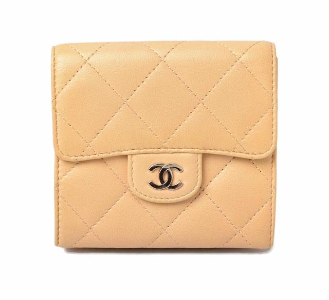 CHANEL 3折財布 A82288 ラムスキン ベージュ/シルバー金具