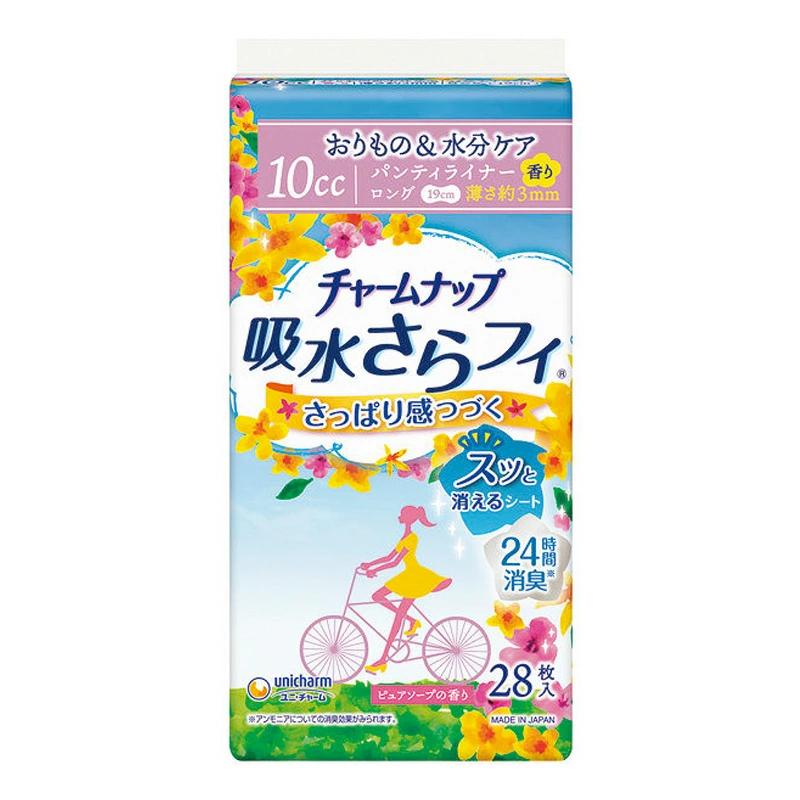 【チャームナップ 吸水さらフィ パンティライナーロング 10cc 19cm ピュアソープの香りの商品詳細】●パンティライナーサイズで水分・ニオイまでギュッと吸引!薄いのにしっかり吸収。●高吸収ポリマーとなみなみシートで瞬間吸収し、表面に残る間もなく、お肌サラサラ!●また消臭ポリマーと吸着カプセルのダブルニオイ吸着システムで24時間消臭長続き!【規格概要】吸収量・・・10cc長さ・・・19cm【発売元、製造元、輸入元又は販売元】ユニ・チャーム※予告なくパッケージ・内容が変更になる場合がございます。予めご了承ください。商品に関するお電話でのお問合せは、下記までお願いいたします。受付時間9:30-17:00(月-金曜日、祝日除く)ベビー用品:0120-192-862生理用品:0120-423-001軽失禁・介護用品(ライフリー):0120-041-062生活用品(化粧パフ・一般ウェットティッシュ・お掃除用品など):0120-573-001衛生用品(マスク):0120-011-529リニューアルに伴い、パッケージ・内容等予告なく変更する場合がございます。予めご了承ください。(さらフィー パンティーライナー)ユニ・チャーム108-8575 東京都港区三田3丁目5番27号 ※お問合せ番号は商品詳細参照