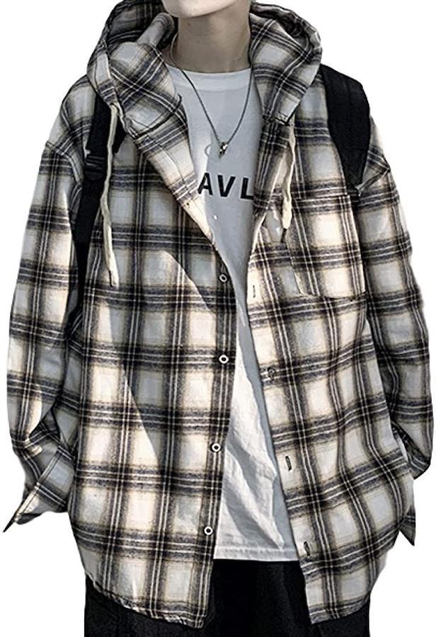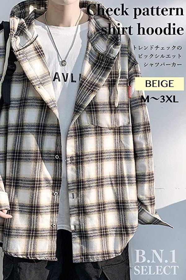 ・トレンドのゆったりシルエットのチェックシャツパーカー。