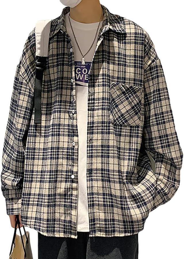 大小のチェックを重ねたオーバーチェック柄がお洒落。