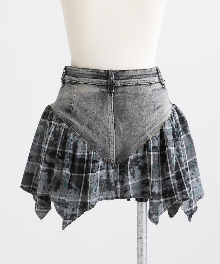 デニム×チェック柄の最強MIX!スカート見えなのに動きやすい万能アイテム