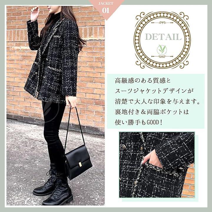 高級感のある質感とスーツジャケットデザインが清楚で大人な印象を与えます。
