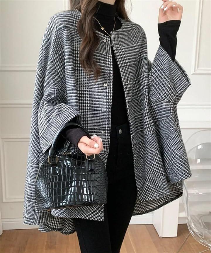 Checkered poncho jacket coat cardigan outerwear women's tunic stylish buttoned up pretty cute office casual