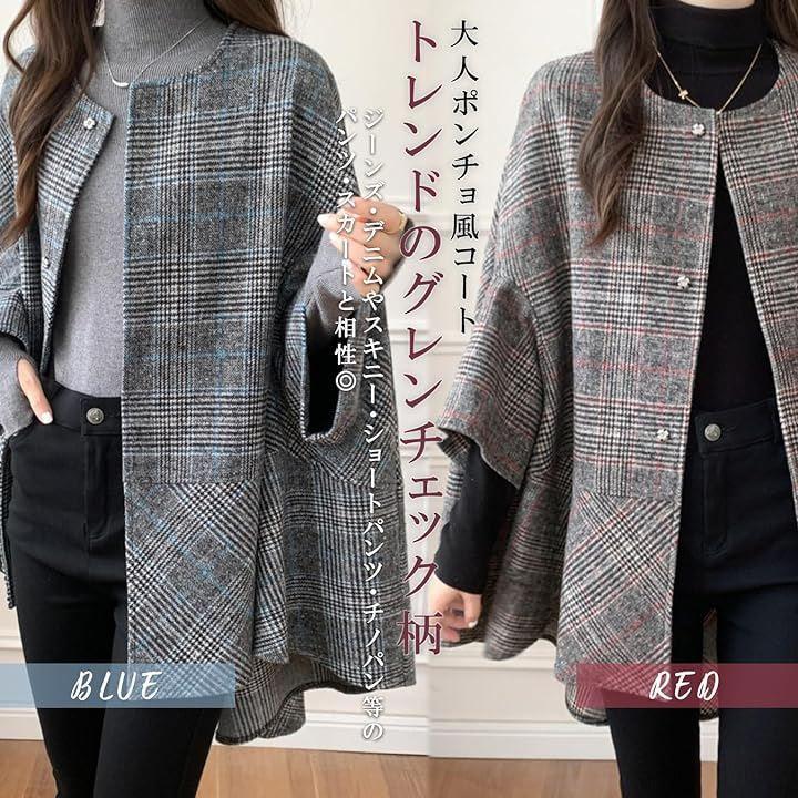 ・トレンドのグレンチェック柄のポンチョ風コート。