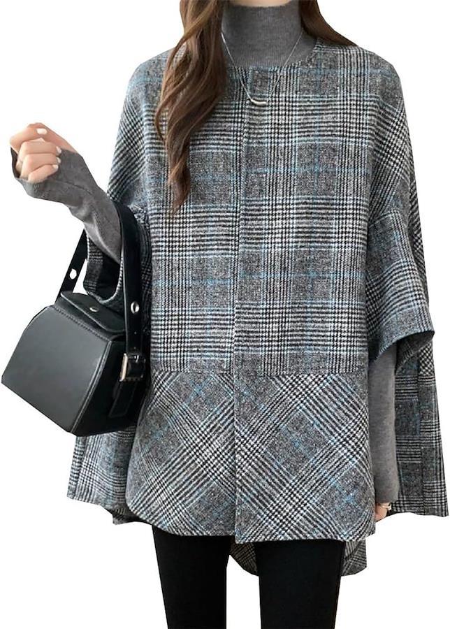 ・トレンドのグレンチェック柄のポンチョ風コート。