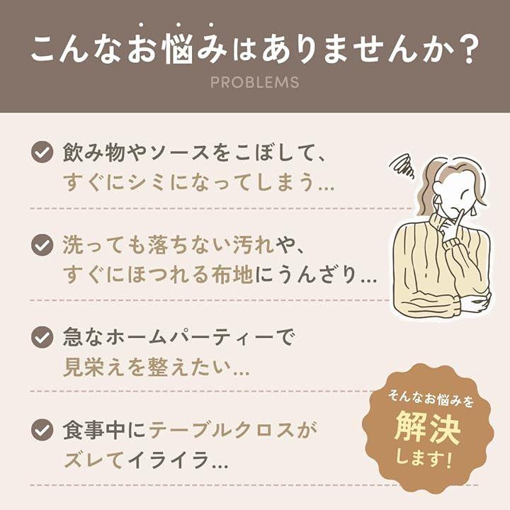 このテーブルクロスは、家族の団らんの場をより快適にするために、大きいサイズ(120x180cm)でもご使用いただけるサイズとなっております。