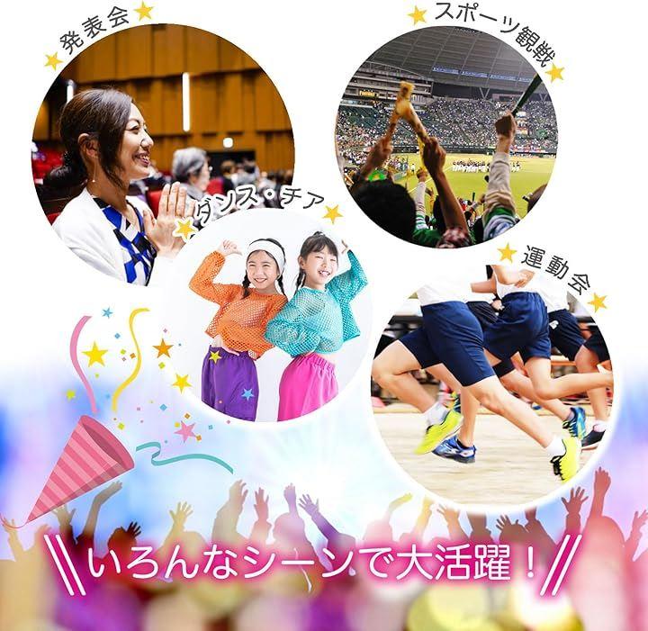 「応援のマストアイテム。」スポーツ、イベント、コンサートなど、いろんなシーンで、楽しい気分をもっと上げてくれそう。選べるカラー展開で、チームカラーやイベントのテーマにぴったり対応。