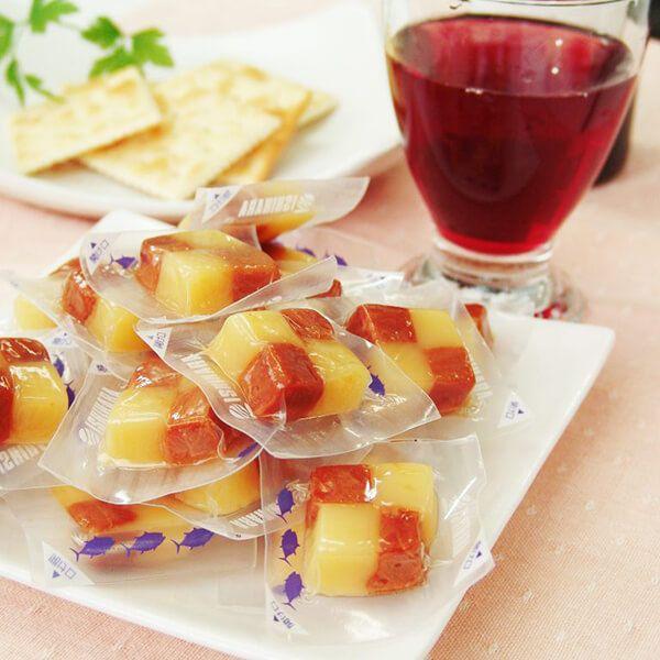 ■原材料名:乳等を主要原料とする食品(ナチュラルチーズ、還元水飴、植物油脂、ゼラチン)、まぐろ、砂糖、醤油、還元水飴、米発酵調味料/乳化剤、(一部に乳成分・ゼラチン・小麦・大豆を含む)