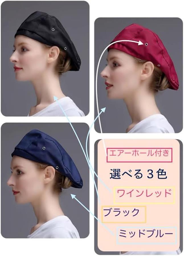 レディース用として企画しつつ、男女兼用でお使いいただけるベレー型のシェフキャップです。