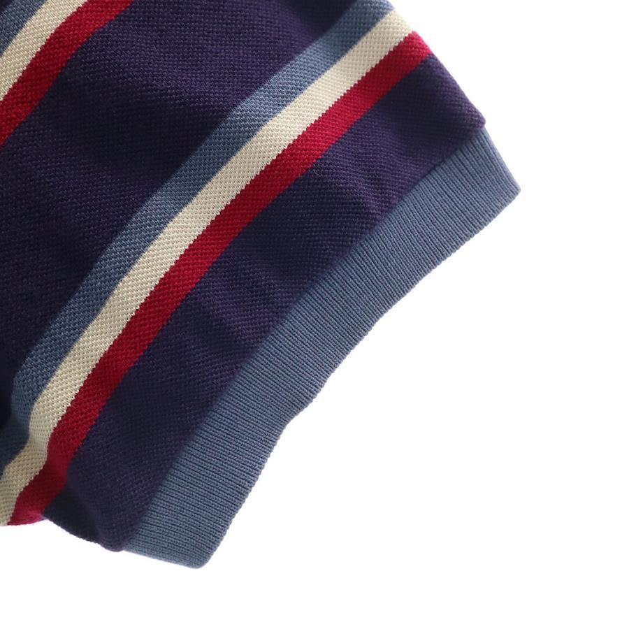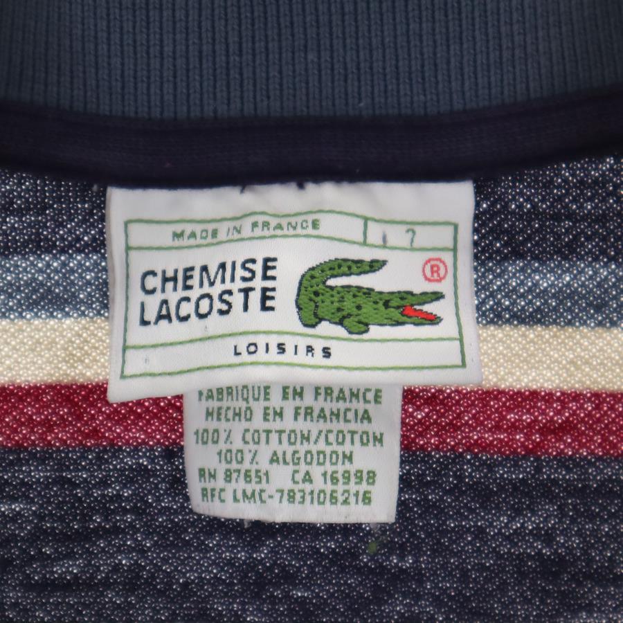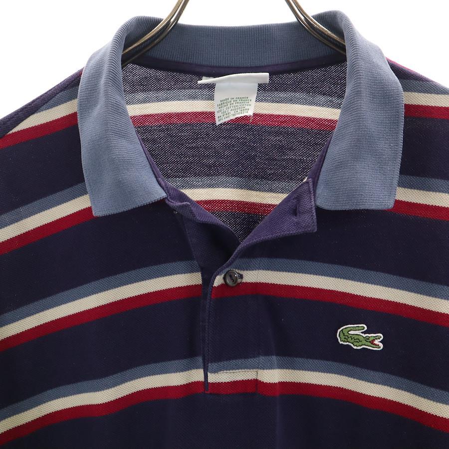 シュミーズラコステ 90s フランス製 オールド ボーダー柄 半袖 ポロシャツ 7 ネイビー 鹿の子 ビッグサイズ メンズ
