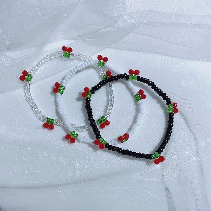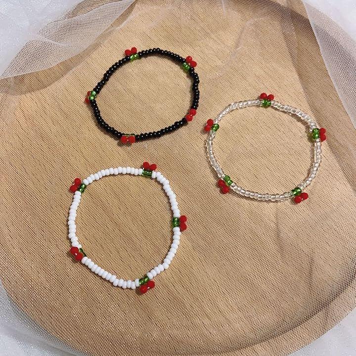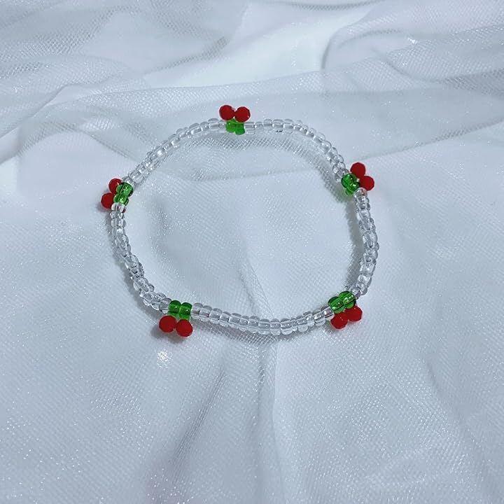 小粒ビーズを連ねたシンプルなデザインに、さりげない赤い実が手元を可愛く彩り、普段使いからライブ・推し活まで幅広く活躍します。