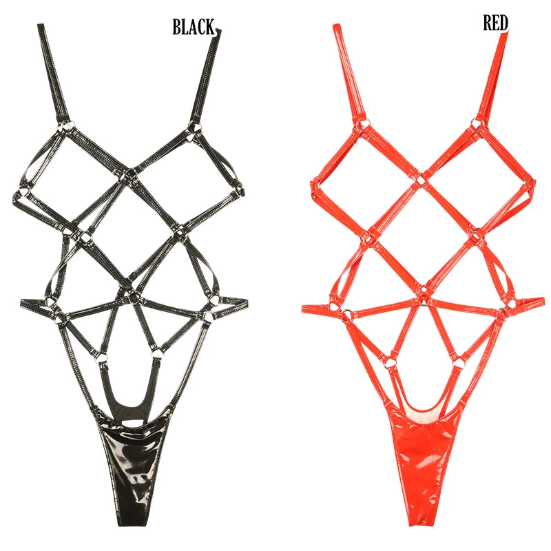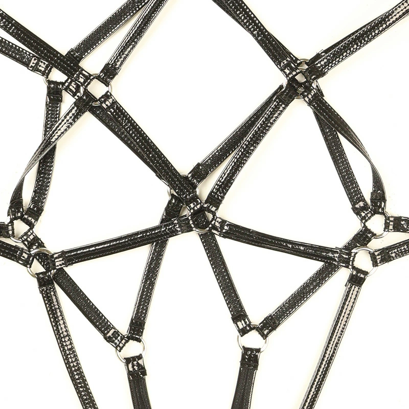エナメル生地は、独特の光沢と艶やかな外観が魅力です。滑らかで冷たい手触りが特徴で、ポリウレタンやPVCでコーティングされた布地やレザーが使われています。高級感のある見た目が特徴のエナメル生地を使用したプレイスーツになります。亀甲縛り風プレイスーツは、独特の縛りデザインが特徴で視覚的に魅力的なシルエットを作り出します。身体にぴったりとフィットし、セクシーで挑発的な印象を与えるアイテム。縛りデザインがエッジの効いた美しさを演出し特別なシーンにぴったりの1枚です。