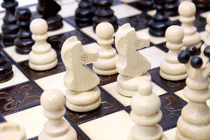 「特徴」折りたたみ式 | 駒用個別スロット | ポーランド製 | 木製ハンドメイド | チェスのルール説明書付属(協力:日本チェス連盟) |