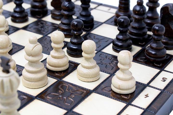 中世ポーランドの王都、クラクフの栄華を思わせる木製チェスセット。
