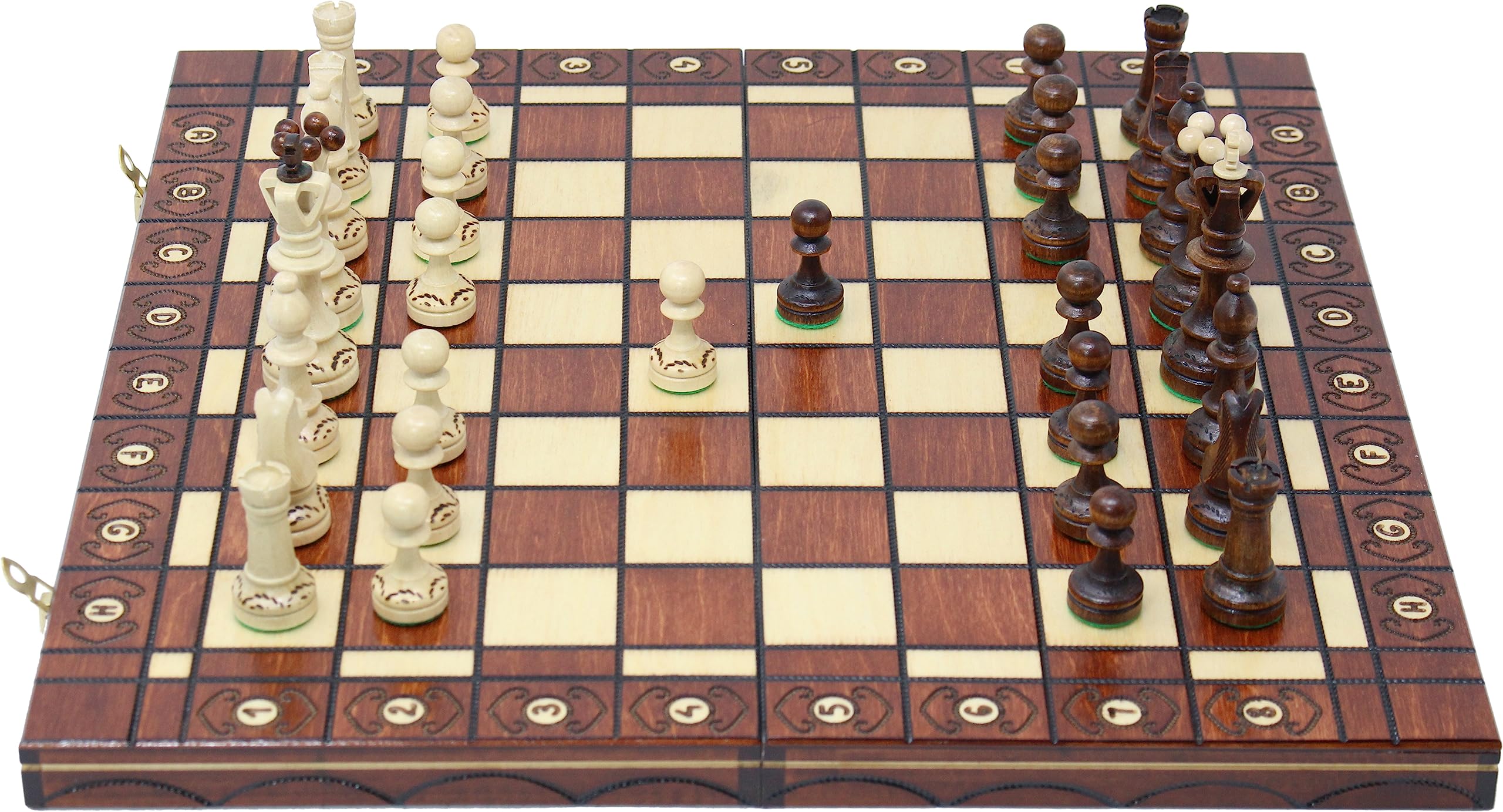 【チェス盤】展開時の大きさ:約 42 x 40.7 x 2.5 cm|折りたたみ時:約 21 x 40.7 x 5 cm|マスの大きさ:約 37 mm【チェス駒】キングの高さ:約 77 mm|キングの底面直径:約 29 mm折りたたみ式|駒用個別スロット|ポーランド製|木製ハンドメイド|ルール説明書付属(協力:日本チェス連盟)|知見豊富な専門店が厳選した定番チェスセットアンティーク風の温かみある質感が魅力的な木製チェスセット。ゲーム用途だけでなくプレゼントやインテリアにもオススメです。木と手作りの温もりを感じられる、世界に一点だけのチェスセットです。色合いや造形には若干の個体差があります。ハンドメイド品をご理解いただける方、大事に使っていただける方のご購入をお待ちしております。【免責事項】メーカーによる商品リニューアルに伴いパッケージが変更が行われた場合、新パッケージでお届け致します事ご了承願います。