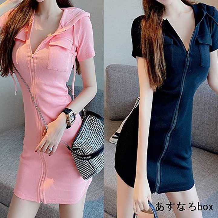 Chest Sexy Open Front Zip Short Sleeve Hoodie Women's Cute Mini Dress S