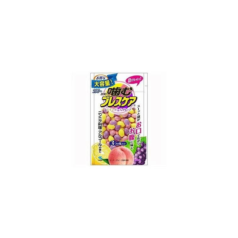 商品の説明●噛むと清涼感がお口に広がり、その清涼感がお腹に届く2層の息清涼食品●「レモン・ピーチ・グレープ」の3つの味をつめこんだお得な100粒入のパウチタイプ