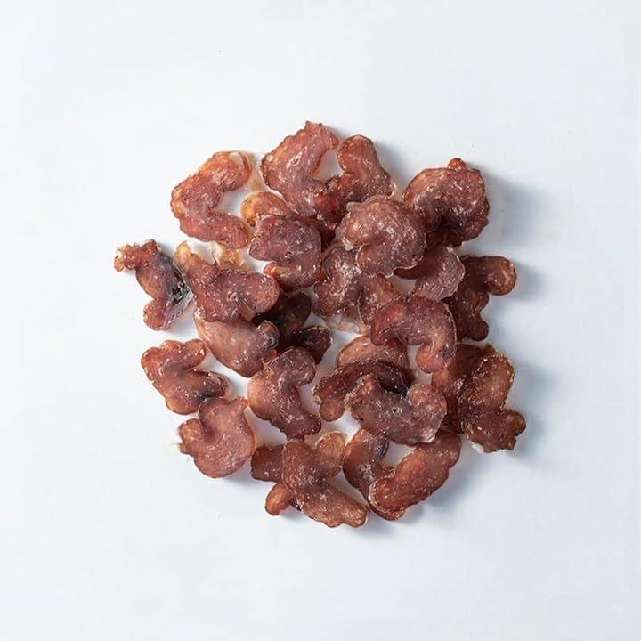 旨味たっぷりなヒューマングレードの国産鶏肉と愛犬が大好きなおいしいブルーベリーと体に良い乳酸菌を腸詰にし、さらに薄切りにしてやわらかく食べやすく仕上げています。