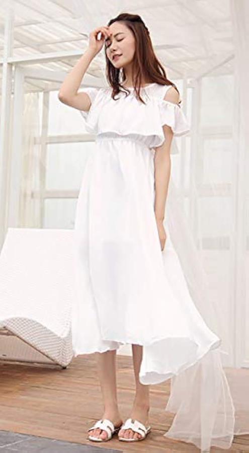 ウエスト切り替えもゴムのため窮屈さもなく、マタニティーワンピースとしてもおすすめです。