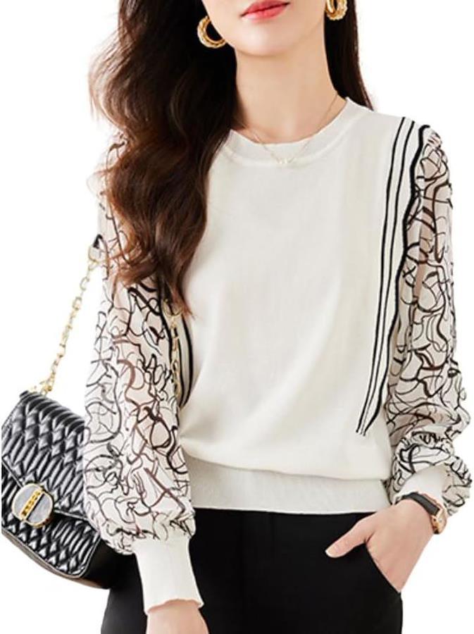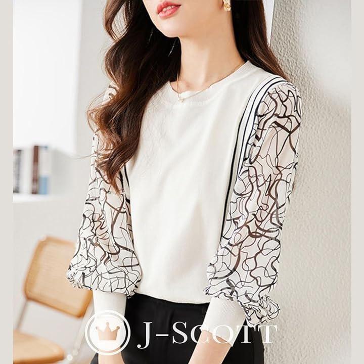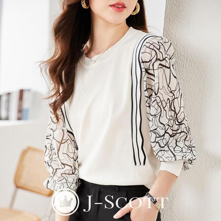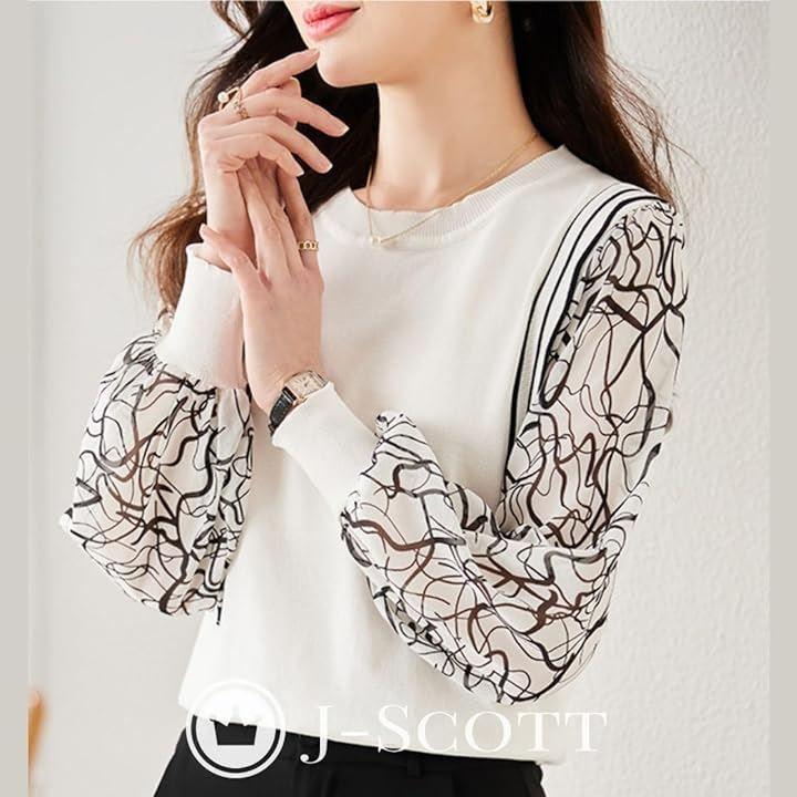 シャリ感のあるコンパクトなニット素材の身頃に、センシュアルな透け感のあるシフォンのパフスリーブが上品さをプラス。