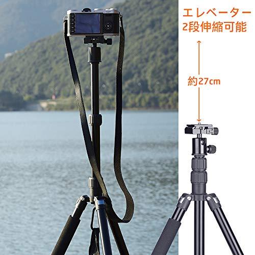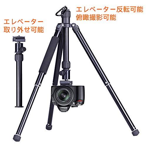持ち運びに便利な三脚、重量は約750g、縮長28cmと小さいめで気軽に旅行に持っていけるサイズ、伸ばすと135cmになる、伸縮比約4.8倍、様々な場所で撮影ができる。最大耐荷重3kgまで、色々な撮影設備対応できる。推奬機材:コンパクトカメラ、ミラーレス一眼、小型一眼+~50mmレンズ、家庭用ビデオカメラ、スマホ(スマホと装着する場合はスマホホルダーが必要です、スマホホルダーは別売り)。御注意:耐荷重は三脚が支えられる機材の質量、範囲内の機材は全部快適に操作できるとは限りません。アルミ素材の脚は回すだけで全段を一気にセッティング出来る!驚異的な素早さ!そして台座部分は強化ナイロン樹脂採用、より軽量化!中軸反転機構で、マクロ撮影には簡単に出来る。また、付属のエンドフックを使えば、重しを追加してあげると安定性を増やすことが出来る。素材:アルミ合金、強化樹脂。軽量でコンパクトため、シートバックや、リュックの中に簡単に、気軽に出し入れできます。扱い方も簡単、使用しやすい。この三脚を持っておけば、運動会、お花見、入学式、夜景、花火撮影、登山、旅行、家族の行事様々なところで大活躍できる。セット内容:三脚x1、収納袋x1