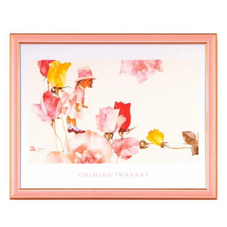 淡い色使いで優しく描き上げたちひろの温かい雰囲気とかわいらしい絵を大きなポスター額にしました。見る人を和ませてくれる一枚です。