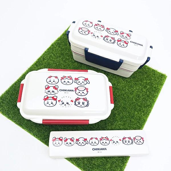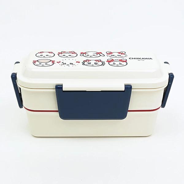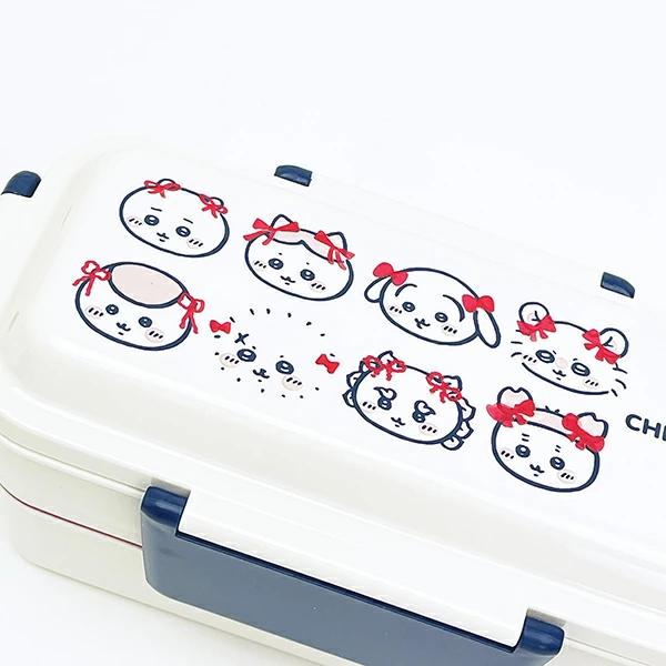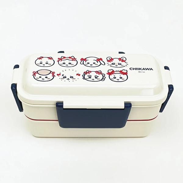 リボンをつけたちいかわたちが可愛い4点ロック2段ランチボックスです。4点ロックでがっつりロックして汁もれしにくいのが嬉しいポイント☆大人向けのシンプルながらも可愛いデザインでどなたでもお使いいただけます♪ぜひ同デザインのランチ用品と合わせて大人ランチをお楽しみください☆食洗機・フタを外して電子レンジ使用可◎【容量:(上)330ml、(下)270ml】