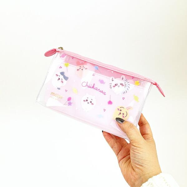 見せたいものは手前に、隠したいものはポケットに収納して綺麗に魅せるちいかわのクリアポーチです。マチタイプなので、しっかり自立してとても使いやすいです♪推し活にもお使いいただけます☆