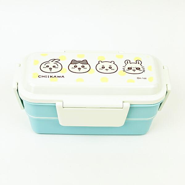 ちいかわのランチボックス二段です。角が少なく洗いやすいT字仕切り付き。フタがUPしているので盛り付けがつぶれにくいためキャラ弁にもおすすめ♪4点ロックでがっつりロックして汁もれしにくいのが嬉しいポイント☆大人向けのシンプルながらも可愛いデザインでどなたでもお使いいただけます♪ぜひランチ用品と合わせて大人ランチをお楽しみください☆食洗機・フタを外して電子レンジ使用可◎【容量:(上)330ml、(下)270ml】