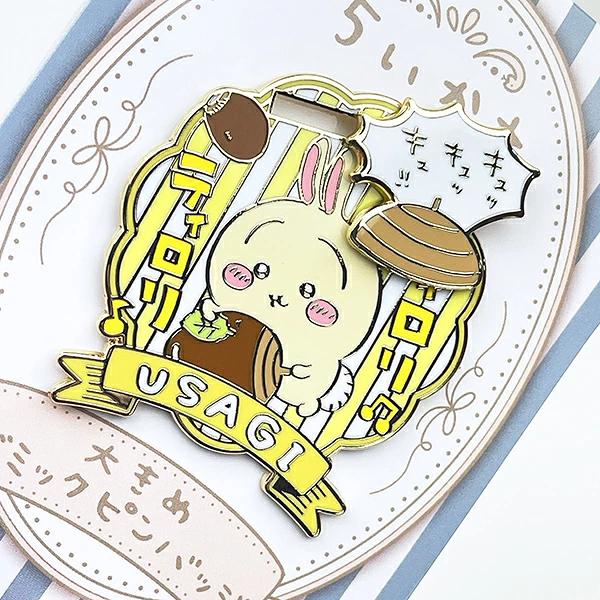 ちいかわ(うさぎ)の大きめで存在感抜群なギミックピンバッジです。パーツが動く楽しいギミック付き♪ちいかわ好きの方にはたまらないアイテム♪ぜひバッグなどにつけて一緒にお出かけしてみてください☆彡