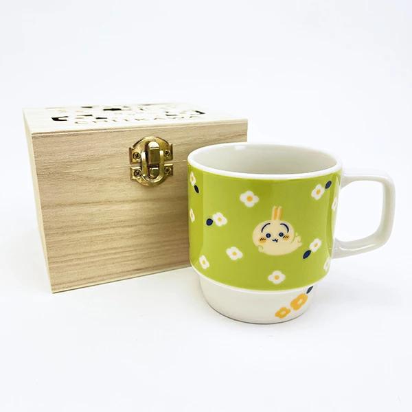 ちいかわ(うさぎ)のお花畑の中でくつろいでいる姿がとってもキュートなマグカップです。ちいかわ、ハチワレ、うさぎが集合した可愛い木箱付き☆木箱は木製ならではの温かみがあり、小物入れとしても使えるのでプレゼントでもらったら嬉しいかも♪華やかなデザインなので食卓をより楽しくしてくれること間違いなし!ぜひちいかわ好きの方はGETしてみてください☆彡【容量:340ml】