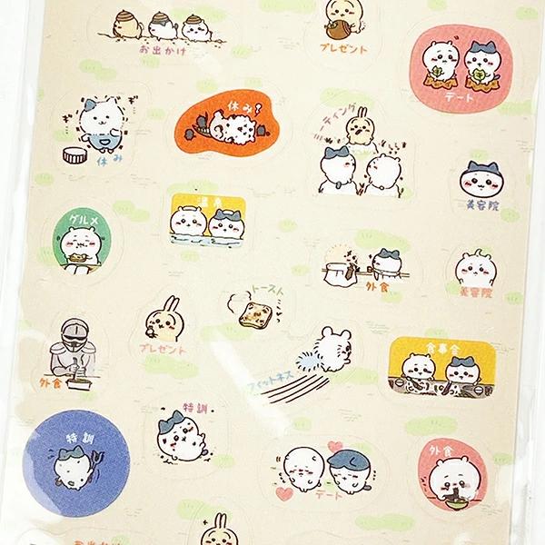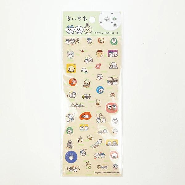 ちいかわのスケジュールシールが登場です!スケジュール帳にも、ノートを飾るのにも使えるシール♪透明のシールなので、下に書き込んだ文字が読みやすい◎色々な使い方を楽しんでくださいね♪全4種類。こちらはデザインDです。