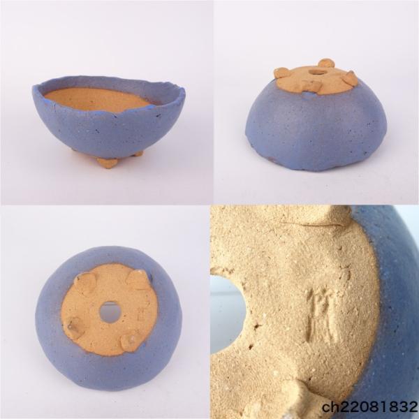 Chikuho Bonsai Pot, Small, Long Side Approx. 12.5cm, Round, Glazed, Quantity Quantity, Brand New
