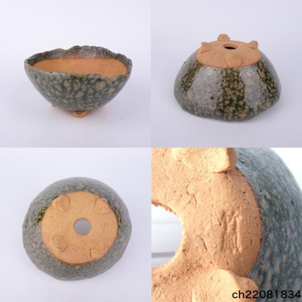 Chikuho Bonsai Pot, Small, Long Side Approx. 12cm, Round, Glazed, Quantity Quantity, Brand New