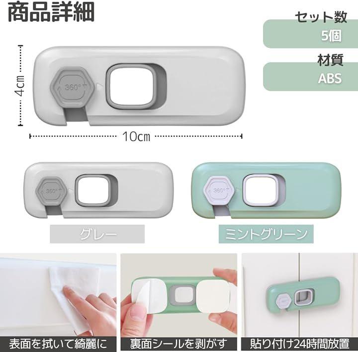 「商品詳細」セット数:5個 サイズ:長さ10cm x 幅4cm 材質:ABS樹脂 カラー:グレー/ミントグリーン