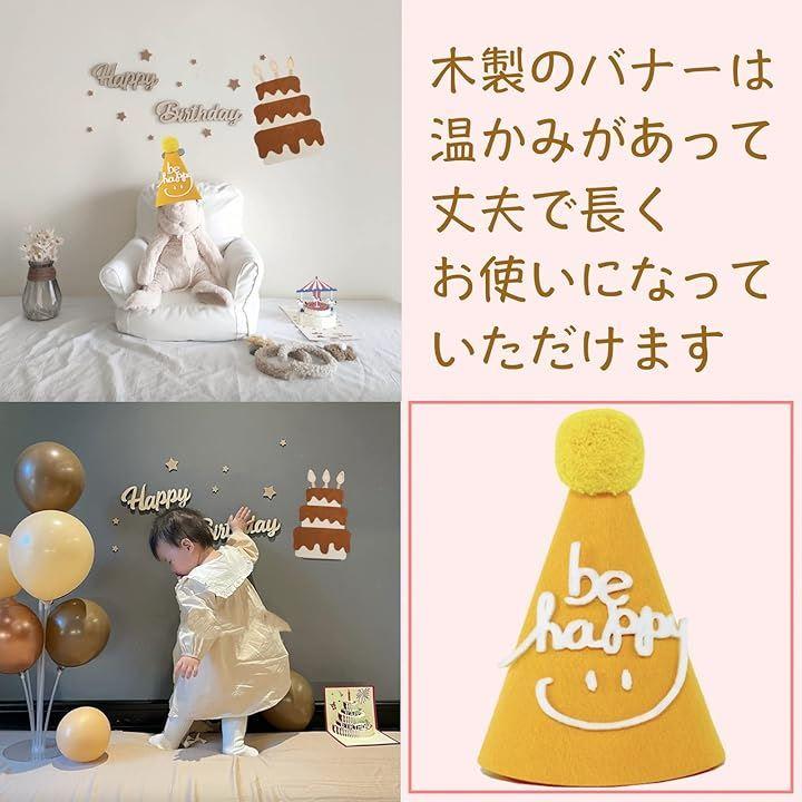 《サイズ》約9.5cmx30cm(詳しくは画像にてご確認下さい)《セット内容》木製バナーx1セット・三角帽子x1個 《カラー》ブラウンxイエロー(帽子)/ブラウンxピンク(帽子)/ブラウンxブラウン(帽子)
