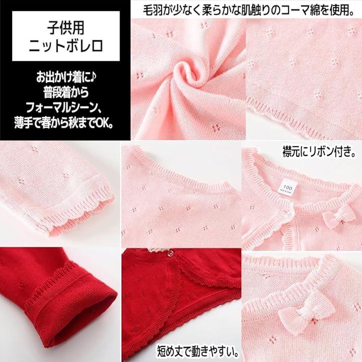 短め丈で動きやすく、上品なデザインはお出かけ着、結婚式や入園式、入学式などフォーマルシーン、発表会や誕生日会など様々な場面におすすめのカーディガンです。