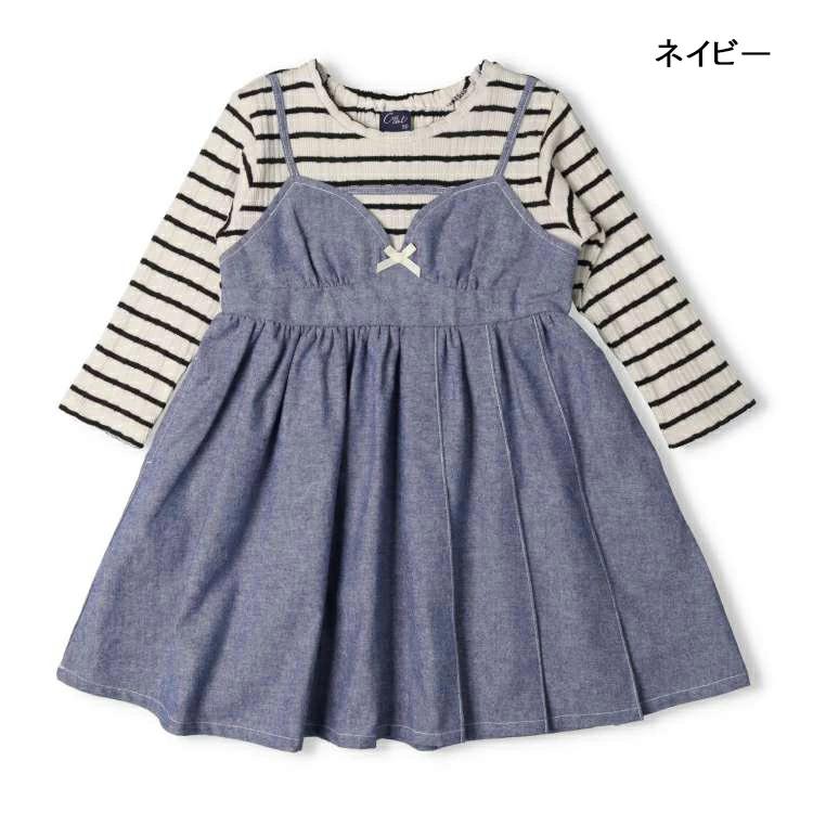 Tシャツとキャミワンピースのレイヤード風ワンピース。Tシャツ部分はテレコ素材で、柔らかく着心地が良いです。スカート部分の左側がプリーツの、アシンメトリーデザインになっています。大人っぽいデザインで、1枚でトレンド感あるスタイルの出来上がり!【アイテム】トップス シンプル ガーリー フェミニン カジュアル お洒落 オシャレ かわいい 可愛い 普段着 デイリーウェア お出かけ着 お外着 お外遊び着 子ども こども 女児 女の子 ガールズ キッズ ベビーサイズ トドラーサイズ 幼稚園 保育園 小学校 通園 通学 小学生 2024年秋冬物新作 丸高衣料 ラベンダー コン 紺 クレセント