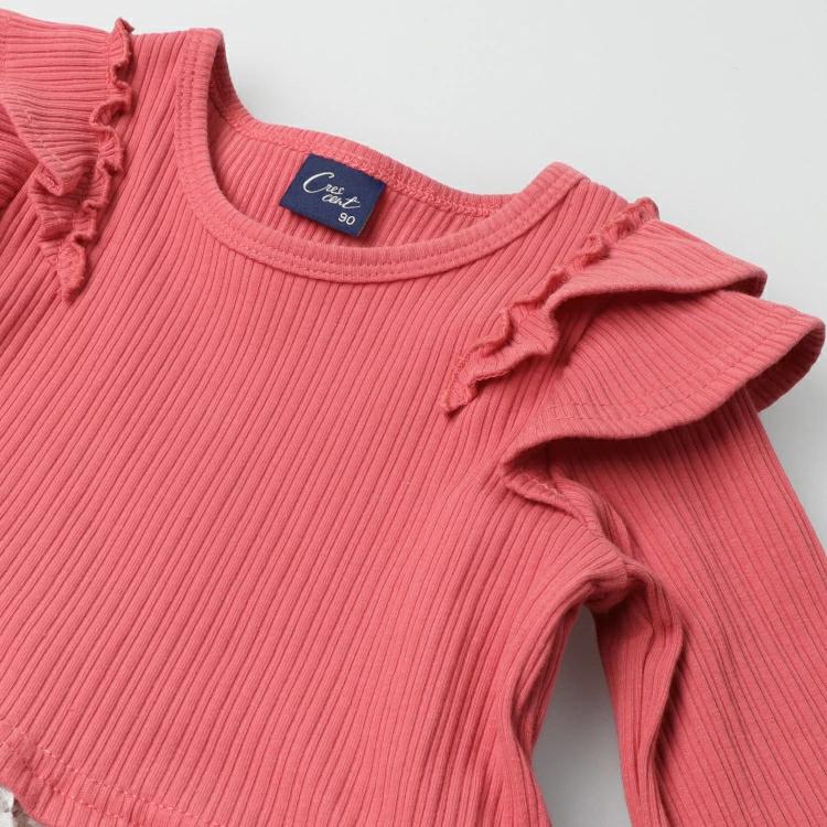 身頃は縦縞模様の凹凸感があり、伸縮性、ストレッチ性があって伸びの良いテレコ素材、スカート部分はチェック柄生地とお花模様のチュールの重ね使い。肩のフリルも女子らしいポイント!1枚でコーディネートが決まるドッキングデザインの長袖ワンピース。【アイテム】トップス シンプル ガーリー フェミニン カジュアル お洒落 オシャレ かわいい 可愛い 普段着 デイリーウェア お出かけ着 お外着 お外遊び着 子ども こども 女児 女の子 ガールズ キッズ ベビーサイズ トドラーサイズ 幼稚園 保育園 小学校 通園 通学 小学生 2025年春夏物新作 丸高衣料 ロングスリーブ 長袖 ダークグレー 灰色 レッド ピンク 朱色 赤色 クレセント フラワー 花柄