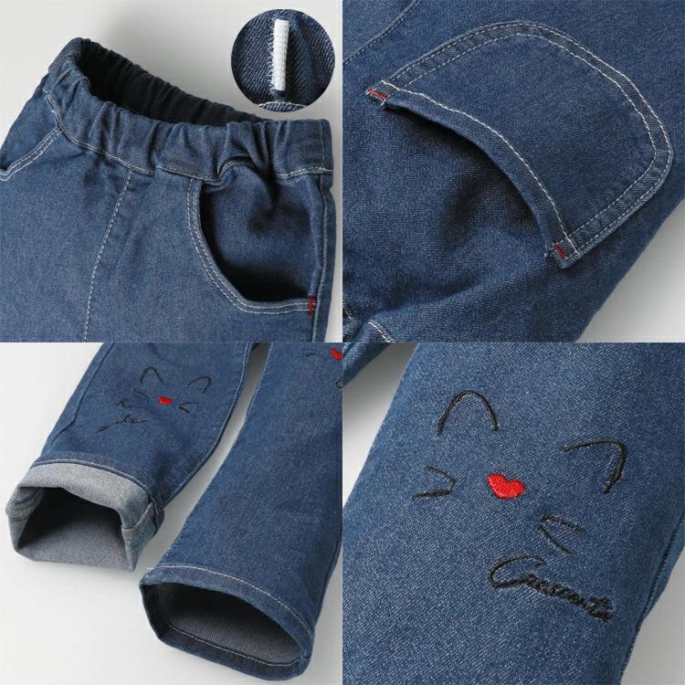 ストレッチ入り生地で動きやすいデニムパンツ、ジーンズ。裾にハートのアップリケと裾レースのデザインと鼻がハートになったネコちゃんの刺繍が入ったデザイン。春のお出かけにもオススメな女の子らしいアイテム。【アイテム】ナチュラル シンプル ベーシック フェミニン ガーリー 無地 カジュアル お洒落 オシャレ かわいい 大人可愛い 普段着 デイリーウェア お出かけ着 お外着 外遊び着 ロング丈 長丈 長ズボン フル丈 ボトムス 子ども こども 女児 女の子 ガールズ キッズ ベビーサイズ トドラーサイズ 幼稚園 保育園 小学校 通園 通学 小学生 2025年春夏物新作 丸高衣料 ネイビー 紺色 ブルー 青色 猫 ねこ 動物 アニマル クレセント