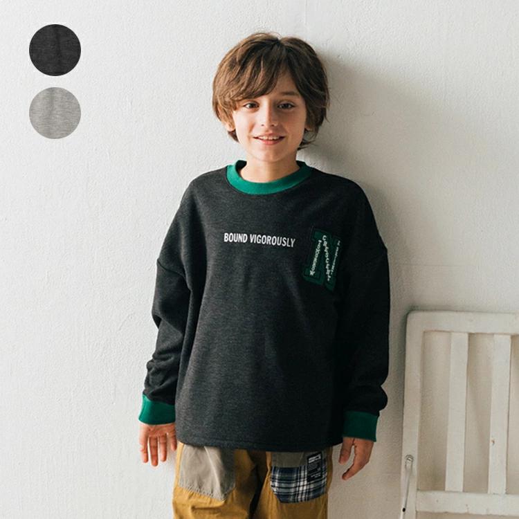 2枚の生地を貼り合わせたボンディング素材で暖かみのあるトレーナー、スウェット。立体感のあるNのアップリケ、衿ぐりと袖の配色がポイント!肩落ちのワイドシルエット。(ベビーサイズのみ肩ボタン仕様になります。)【アイテム】トップス カジュアル お洒落 オシャレ かっこいい かわいい 可愛い 普段着 デイリーウェア お出かけ着 お外着 お外遊び着 子ども服 こども服 男児 男の子 ボーイズ キッズ ベビーサイズ トドラーサイズ 幼稚園 保育園 小学校 通園 通学 小学生 2024年秋冬物新作 丸高衣料 ロングスリーブ 長袖 ブラック 黒色 グレー 灰色 クレセント