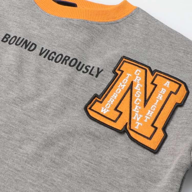 2枚の生地を貼り合わせたボンディング素材で暖かみのあるトレーナー、スウェット。立体感のあるNのアップリケ、衿ぐりと袖の配色がポイント!肩落ちのワイドシルエット。(ベビーサイズのみ肩ボタン仕様になります。)【アイテム】トップス カジュアル お洒落 オシャレ かっこいい かわいい 可愛い 普段着 デイリーウェア お出かけ着 お外着 お外遊び着 子ども服 こども服 男児 男の子 ボーイズ キッズ ベビーサイズ トドラーサイズ 幼稚園 保育園 小学校 通園 通学 小学生 2024年秋冬物新作 丸高衣料 ロングスリーブ 長袖 ブラック 黒色 グレー 灰色 クレセント