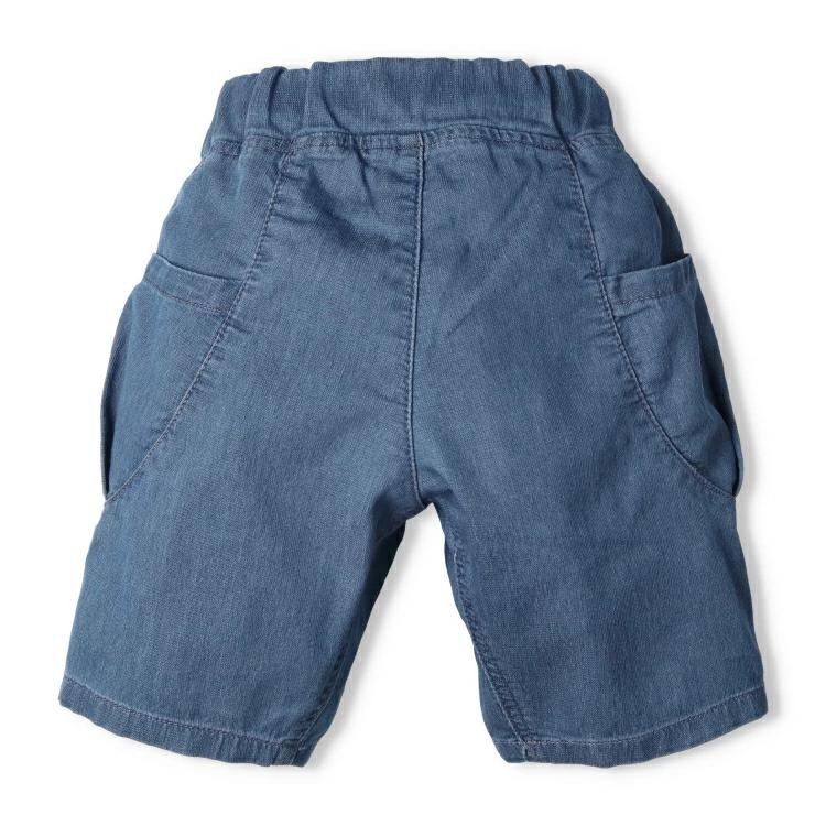 脇に大きなポケット付きの5分丈のデニムハーフパンツ。両脇のタックポケットのボリューム感がポイント!接触冷感のメッシュデニムの生地を使用しているので、夏にもさらっと着られるアイテム。 同じデザインのスクールサイズ(140,150,160cm)はV35125になります。【アイテム】シンプル ベーシック 無地 カジュアル お洒落 オシャレ かっこいい かわいい 可愛い 普段着 お外着 お外遊び着 デイリーウェア お出かけ着 ハーフパンツ 短パン 半パン 半ズボン ボトムス 子ども こども 男児 男の子 ボーイズ キッズ ベビーサイズ トドラーサイズ 幼稚園 保育園 小学校 通園 通学 小学生 2025年春夏物新作 丸高衣料 ブルー 青色 Gパン ジーパン ジーンズ ダディオダディ