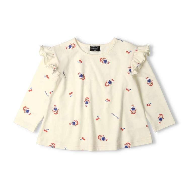 ダディオダディの人気キャラクター「ダディコちゃん」の総柄長袖Tシャツ・ロンTです。【安心の日本製】でギフトやプレゼントにもオススメ!ダディコちゃんとチェリー、ブランドロゴの飛び柄がキュート♪Aラインシルエットに袖のフリルデザインがガーリーで上品な雰囲気です。本体は柔らかくて肌触りの良い天竺(綿)100%生地を使用。季節の変わり目にぴったりなロンTは、デイリーからお出掛けまで幅広く活躍するアイテムです! ☆90cmのみ肩ボタン仕様です。【アイテム】長袖 ロングスリーブ トップス シンプル ガーリー フェミニン カジュアル お洒落 オシャレ かわいい 可愛い 普段着 デイリーウェア お出かけ着 お外着 お外遊び着 子ども こども 女児 女の子 ガールズ キッズ ベビーサイズ トドラーサイズ 幼稚園 保育園 小学校 通園 通学 小学生 2024年秋冬物新作 丸高衣料 オフホワイト 白色 パープル 紫 ラベンダー さくらんぼ サクランボ コットン100% 綿100%