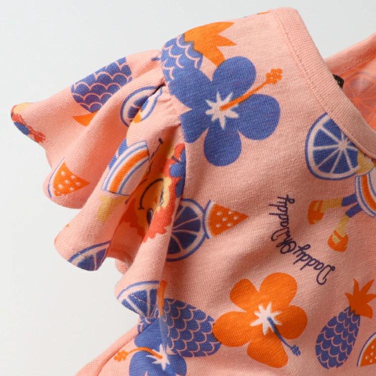 【安心の日本製】でギフトやプレゼントにもオススメ!肌触りの良い綿100%。ダディオダディの人気の女の子のキャラクターのダディコちゃんの総柄ワンピース。夏らしいお花やフルーツの総柄が目を惹くアイテム。フレアーなシルエットで着やすい!【アイテム】トップス シンプル ガーリー フェミニン カジュアル お洒落 オシャレ かわいい 可愛い 普段着 デイリーウェア お出かけ着 お外着 お外遊び着 子ども こども 女児 女の子 ガールズ キッズ ベビーサイズ トドラーサイズ 幼稚園 保育園 小学校 通園 通学 小学生 2025年春夏物新作 丸高衣料 果物 スイカ パイナップル オレンジ ハイビスカス コットン100% 綿100% ダディオダディ ホワイト 白色 ピンク made in Japan メイドインジャパン 国内生産