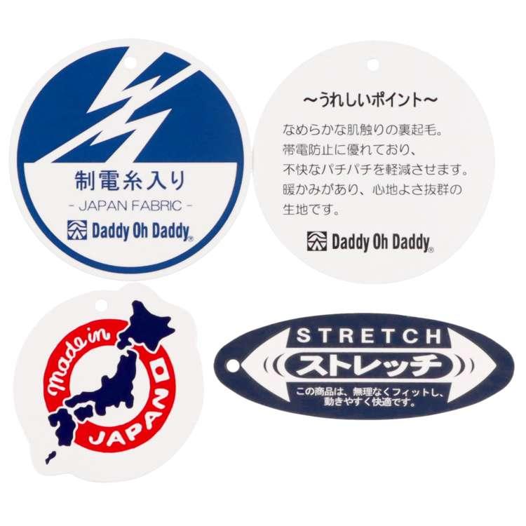 ダディオダディの人気キャラクター「ダディコちゃん」のワッペンが左裾に付いた9分丈のレギンスです。【安心の日本製】で、ギフトやプレゼントにもおすすめ!ストレッチのきいた裏起毛素材で、肌触りの良いシンプルなデザイン。静電気の不快なパチパチを軽減させる「制電糸入り」なので、乾燥する冬も安心してご着用いただけます。どんなコーデとも相性抜群のアイテムです♪【アイテム】ナチュラル シンプル ベーシック フェミニン ガーリー 無地 カジュアル お洒落 オシャレ かわいい 大人可愛い 普段着 デイリーウェア お出かけ着 お外着 外遊び着 ロング丈 長丈 長ズボン フル丈 ボトムス 子ども こども 女児 女の子 ガールズ キッズ ベビーサイズ トドラーサイズ 幼稚園 保育園 小学校 通園 通学 小学生 2024年秋冬物新作 丸高衣料 コン ネイビー 紺色 グレー 灰色 ダディオダディ 静電気防止