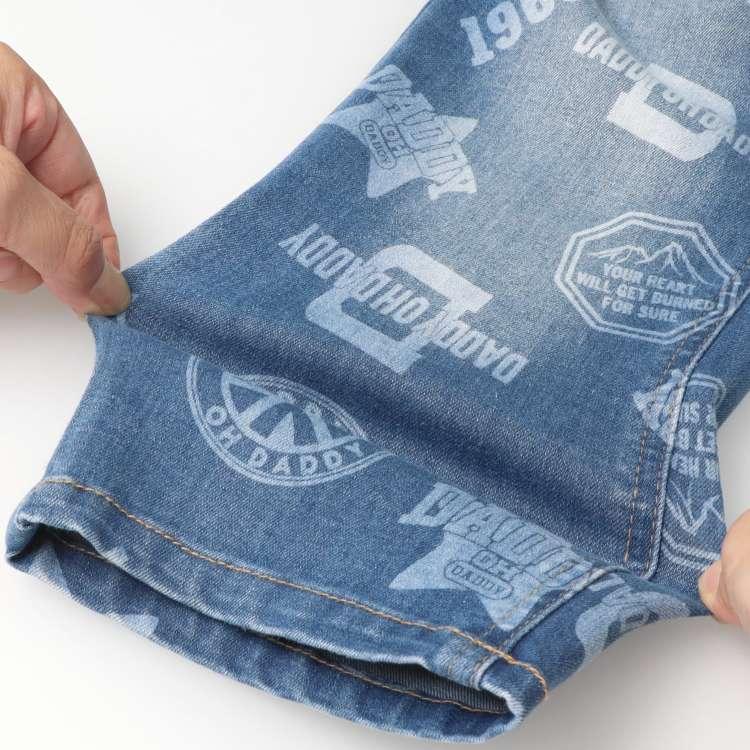 ダディオダディのロゴデザインの総柄がプリントされたストレッチデニムパンツです。柔らかく伸びの良いストレッチデニム生地で、履きやすく動きやすいのが特徴です!厚すぎない10オンスのデニムなので、季節を問わず、幅広いシーズンで活躍します。前身頃と後ろ身頃にはヴィンテージ感が出るようにブラスト加工が施されており、履くだけで雰囲気が出るアイテムです。ゆったりめのストレートシルエットで、カジュアルに履くことができます。同じデザインのスクールサイズ(140,150,160cm)はV53025になります。【アイテム】シンプル ベーシック カジュアル お洒落 オシャレ かっこいい かわいい 可愛い 普段着 お外着 お外遊び着 デイリーウェア お出かけ着 ロング丈 長丈 長ズボン フル丈 ボトムス 子ども こども 男児 男の子 ボーイズ キッズ ベビーサイズ トドラーサイズ 幼稚園 保育園 小学校 通園 通学 小学生 2024年秋冬物新作 丸高衣料 ネイビー コン 紺色 ブルー 青 ダディオダディ