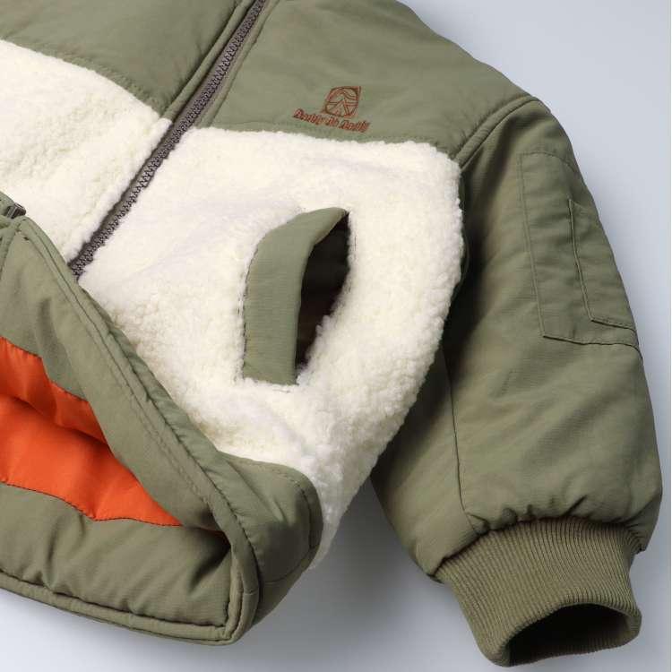 リップストップとボアの切替デザインのジャケット、アウター。アウトドアな生地感とボアの切替がかっこいい!中綿入りで防寒面もばっちりです。同じデザインのスクールサイズ(140,150,160cm)はV52109になります。【アイテム】無地 シンプル カジュアル お洒落 オシャレ かっこいい かわいい 可愛い 普段着 デイリーウェア お出かけ着 ロングスリーブ 長袖 アウター ブルゾン ジャンパー コート ジップアップ フロントジップ 子ども こども 男児 男の子 ボーイズ キッズ ベビーサイズ トドラーサイズ 幼稚園 保育園 小学校 通園 通学 小学生 2024年秋冬物新作 丸高衣料 ブラック 黒色 カーキグリーン 深緑色 ダディオダディ