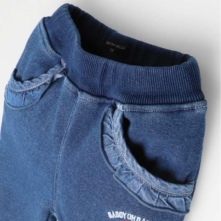 ダディオダディの人気キャラクター「ダディコちゃん」の爆温パンツです。毎年大人気の爆温裏起毛シリーズ。裏起毛素材よりもさらに裏の毛足が長いのが特徴です。あたたかく柔らかな素材、そして肌触りも良いのがポイントです。前ポケットにはフリルが付いており、上品なデザインです。左前身頃にはダディコちゃんの刺繍入り♪デニム風のストレッチ素材なので外遊びでも動きやすく、デイリーにおすすめのアイテムです。【アイテム】ナチュラル シンプル ベーシック フェミニン ガーリー 無地 カジュアル お洒落 オシャレ かわいい 大人可愛い 普段着 デイリーウェア お出かけ着 お外着 外遊び着 ロング丈 長丈 長ズボン フル丈 ボトムス 子ども こども 女児 女の子 ガールズ キッズ ベビーサイズ トドラーサイズ 幼稚園 保育園 小学校 通園 通学 小学生 2024年秋冬物新作 丸高衣料 コン ネイビー デニム 爆温 紺色 ダディオダディ