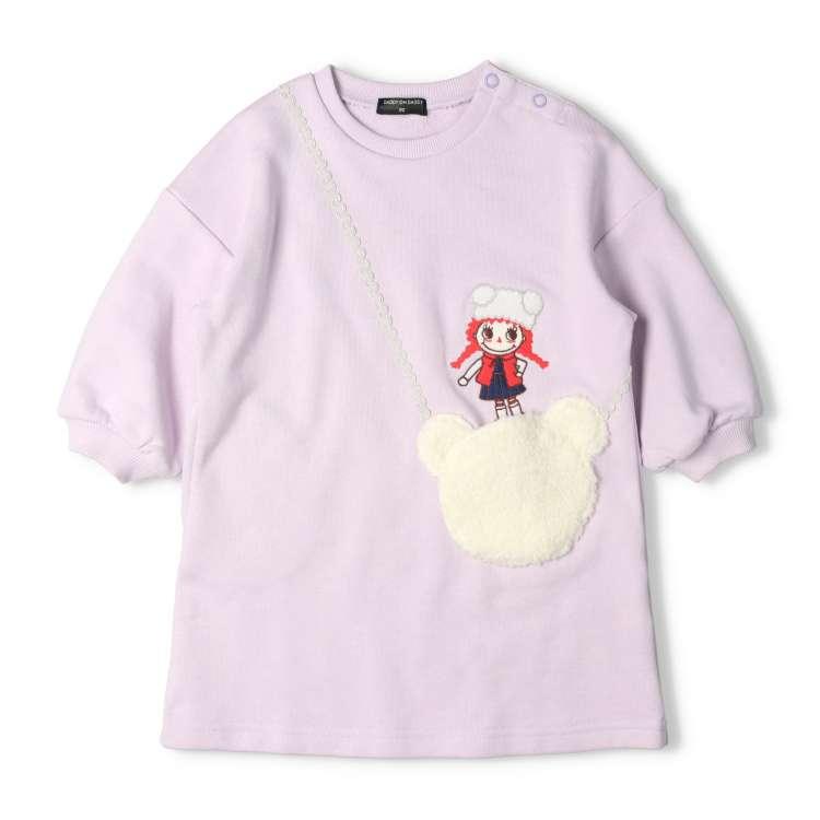 ダディオダディの人気キャラクター「ダディコちゃん」の刺繍が入った、くまポシェット付きの裏毛ワンピース。くまポシェット部分はふわふわのボア仕様! ダディコちゃんもくまの帽子をかぶっていて、冬仕様になっています♪ ポシェット部分はポケットになっているので、実際に物を入れることもできます。肌触りの良い綿100%の裏毛生地なので、着心地も抜群です!90cmのみ肩ボタン仕様です。【アイテム】長袖 ロングスリーブ ワンピース シンプル ガーリー フェミニン カジュアル お洒落 オシャレ かわいい 可愛い 普段着 デイリーウェア お出かけ着 お外着 お外遊び着 子ども こども 女児 女の子 ガールズ キッズ ベビーサイズ トドラーサイズ 幼稚園 保育園 小学校 通園 通学 小学生 2024年秋冬物新作 丸高衣料 薄紫色 ラベンダー クマ くま テディベア